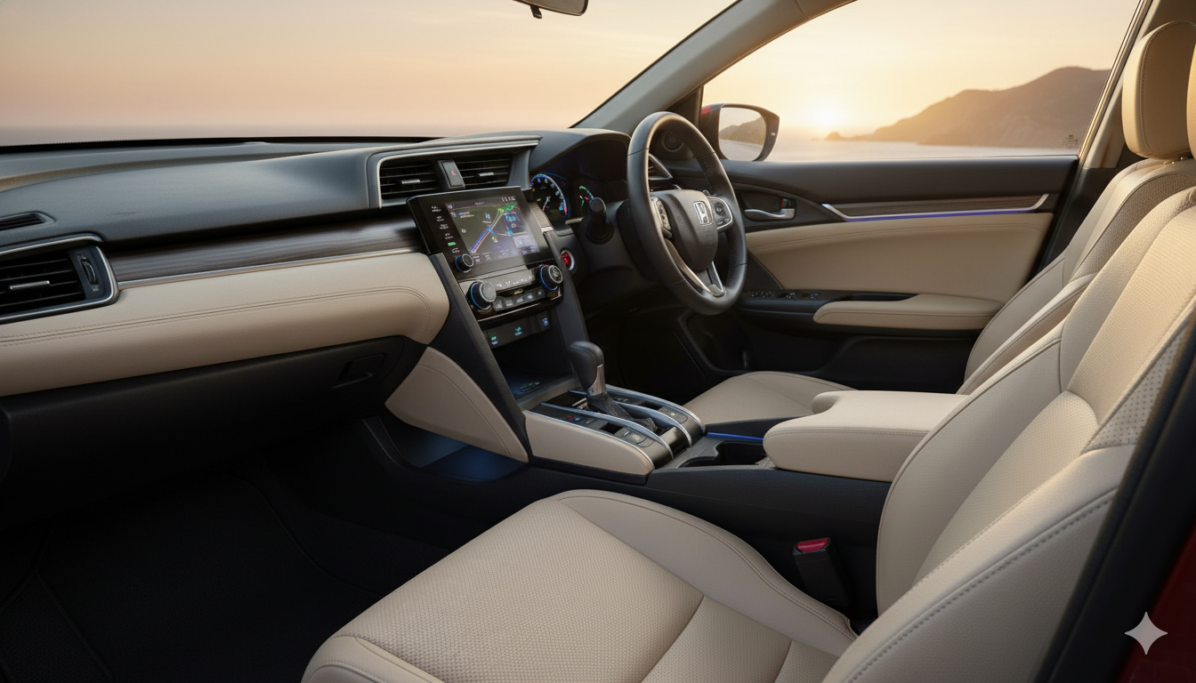 The layout of the dashboard is very smart and easy to use. You get a leather-wrapped steering wheel that feels great in your hands. There is also plenty of room for your phone, keys, and coffee cups. Honda used high-quality materials on the dash and door panels, so nothing feels “cheap” or plasticky. For families, the back seat is surprisingly roomy. You can easily fit two adults or three children in the back without anyone feeling squished.